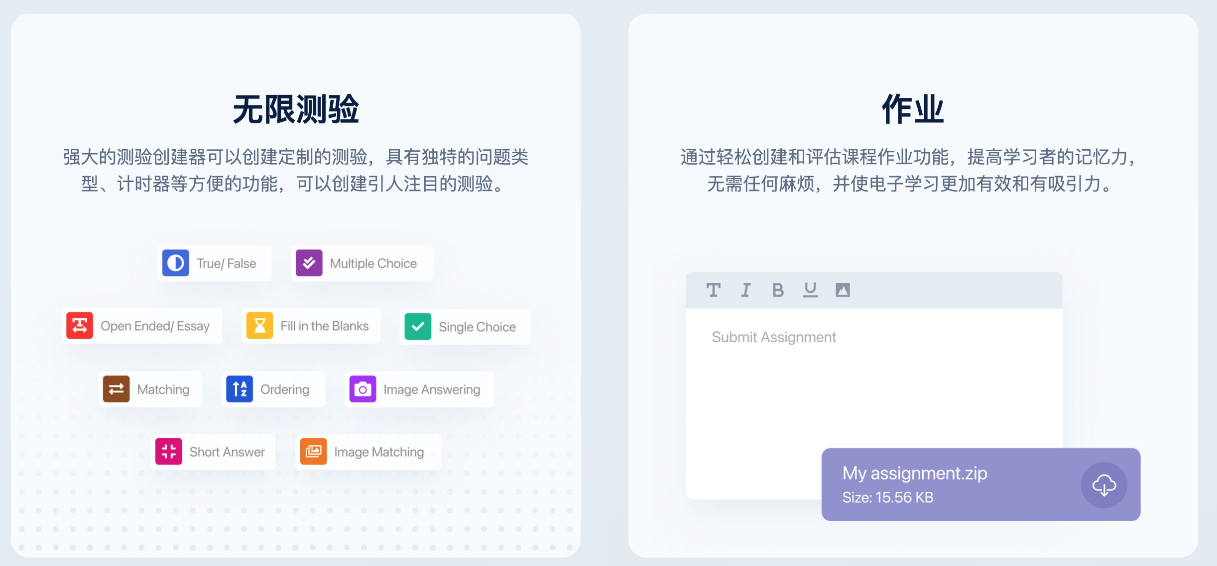 通过轻松为您的课程创建和评估作业功能提高学习者的记忆力,没有任何麻烦,并使电子学习更加有效和吸引人。